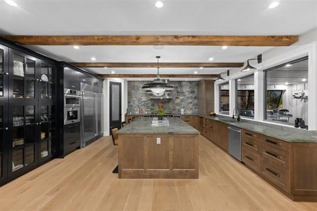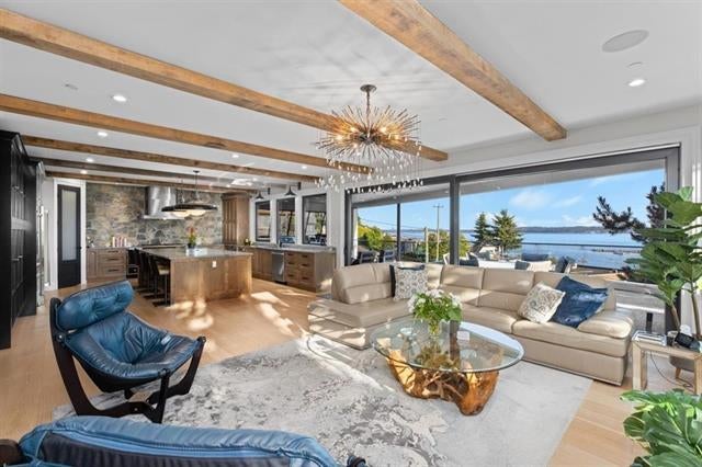 PIER VIEW - an Iconic Hillside Residence offering an unrivalled White Rock lifestyle. This home is done to the nines with tasteful and timeless design throughout. Sensational OCEAN and PIER VIEWS throughout, exquisite millwork, stone feature walls, dazzling fixtures, an elevator, Smart Home Automation and bonus 6 car garage! The top floor of this magnificent home boasts an open concept Great Room with high end sliding walls to create seamless indoor/outdoor entertaining space. The Chef’s Dream Kitchen with quartzite counters and a luxurious La Cornue stove, and a formal Dining Room with a wine cellar. Hotel inspired primary suite with 2 additional bedrooms with ensuited below. The floor below offers the unique ability to function as a 2 bedroom suite for family or guests.